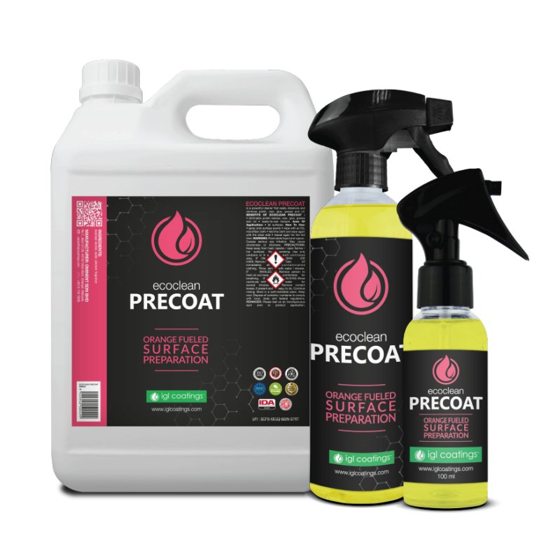 Ecoclean Precoat je sredstvo za čišćenje i pripremu površine koje je formulirano za otapanje čestica ulja i uklanjanje tvrdokornih ostataka poliranja kako bi se savršeno pripremila površina za nanošenje keramičkog premaza.